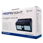 El foco solar a muro Megabright de 4W con sensor de movimiento está diseñado para ofrecer iluminación automática y eficiente en espacios exteriores. Su panel solar integrado permite aprovechar la energía del sol para iluminar sin consumo eléctrico.