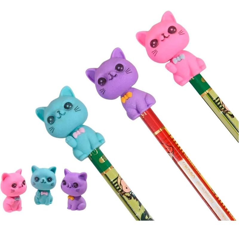Las gomas de borrar Gatos Homewell incluyen 3 unidades con un diseño encantador y divertido. Están fabricadas en caucho, permitiendo un borrado eficiente en lápiz. Ideales para el uso escolar o en el hogar. Aportan un toque lúdico a los útiles diarios.