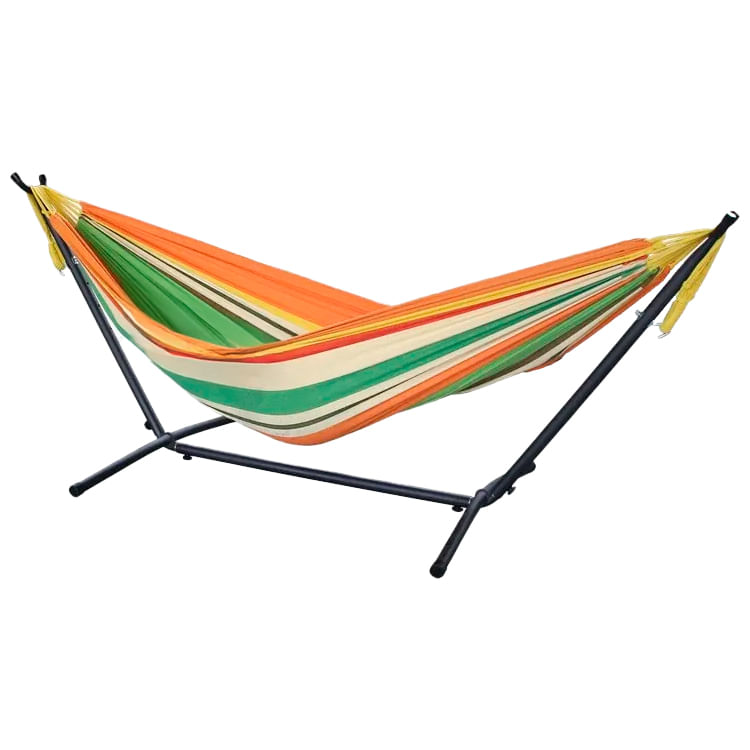 Hamaca Con Base Metalica Naranja Amarilla Bighouse
