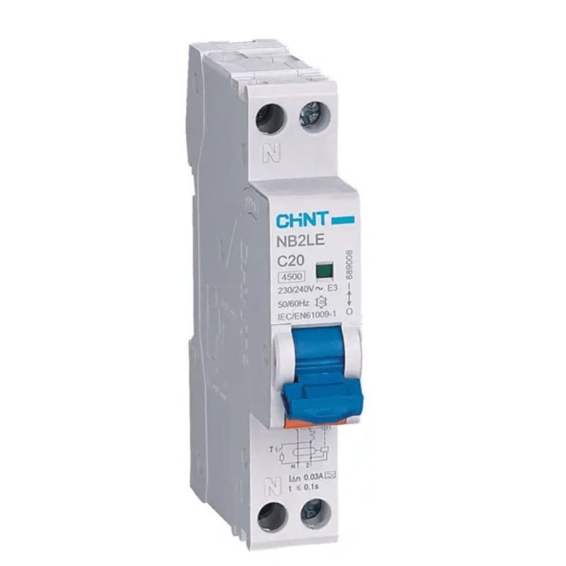 El interruptor automático bipolar 1P+N con diferencial Chint de 25A está diseñado para proteger eficazmente frente a corrientes residuales, sobrecargas y cortocircuitos. Ante una fuga de corriente o contacto eléctrico accidental, actúa de forma inmediata interrumpiendo el suministro, resguardando la seguridad de las personas y evitando daños en los equipos eléctricos.