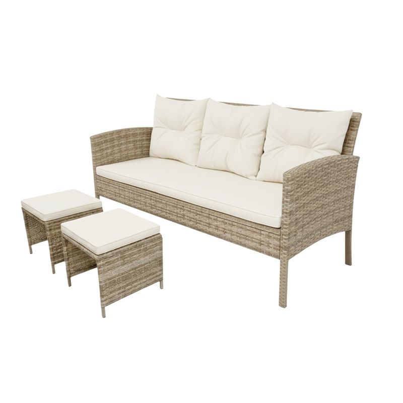- Materiales: Acero recubierto de polvo, ratán PE, cojines de espuma