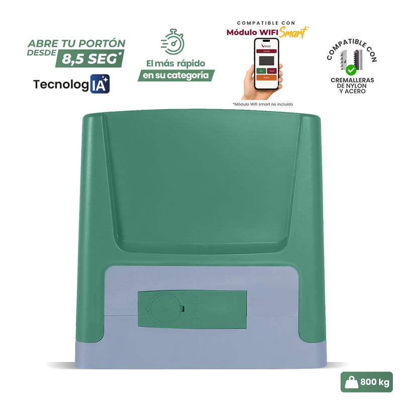 Su compatibilidad con sistemas WiFi permite controlar el portón desde el celular, mejorando la comodidad y el monitoreo en tiempo real.