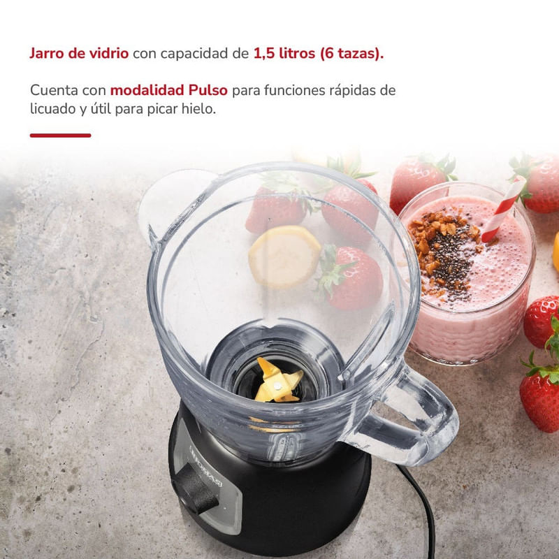 Equipada con un jarro de vidrio de 1.5 litros, patas antideslizantes y sistema de bloqueo, ofrece seguridad y estabilidad en todo momento. Perfecta para quienes buscan una herramienta confiable, duradera y eficiente en la cocina diaria.