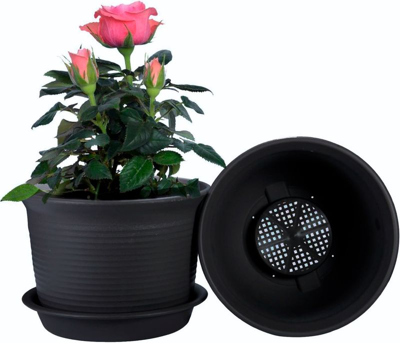 El Macetero Casa Viva de 27x19 cm en color negro es una pieza de estilo clásico que se adapta a cualquier rincón de tu hogar. Su forma redondeada, con un borde ancho y curvado hacia afuera, le da un toque distintivo y elegante. Con una capacidad de 7.4 litros, es ideal para cultivar una gran variedad de plantas, desde pequeñas flores hasta hierbas aromáticas, tanto en interiores como en exteriores.