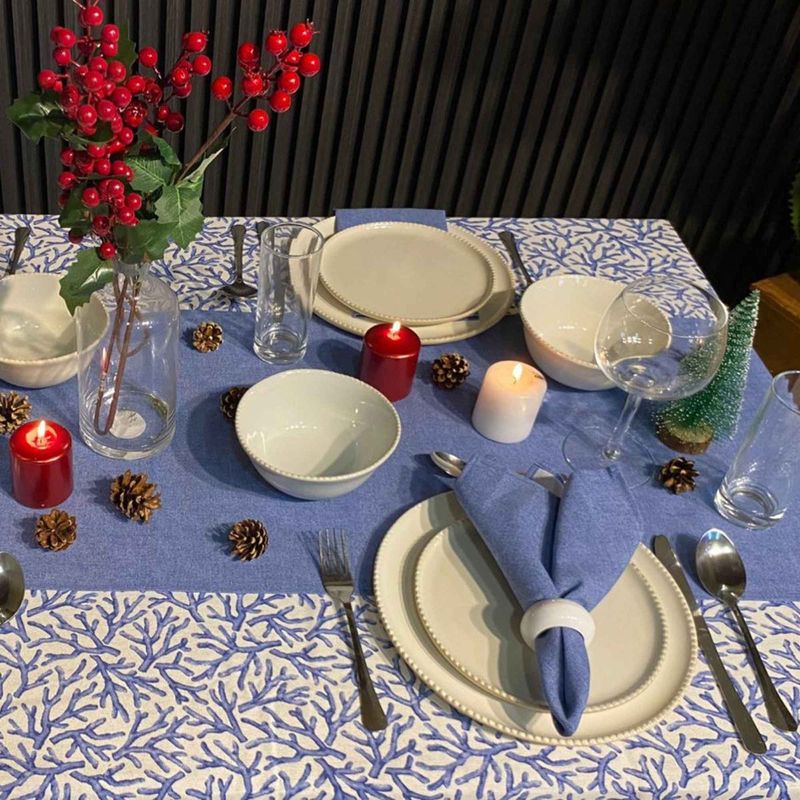 El mantel Corallium azul de Decoexpress aporta un diseño inspirado en el mar, ideal para crear ambientes relajados y sofisticados.