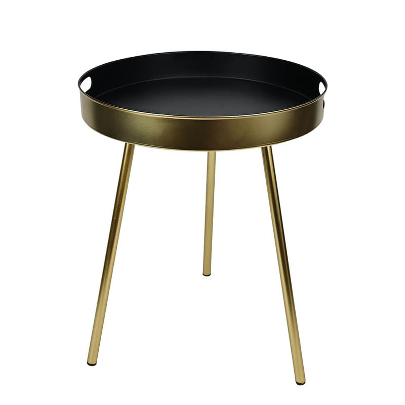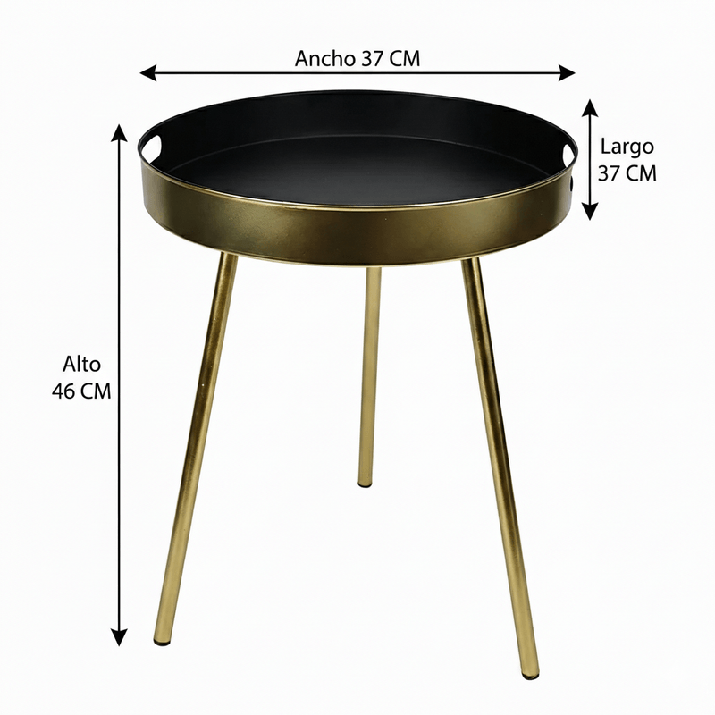 La mesa lateral redonda Chantilly negro-dorado combina un diseño moderno con materiales resistentes, convirtiéndose en un complemento decorativo ideal para salas de estar, dormitorios u oficinas en casa. Su estructura metálica entrega estabilidad y durabilidad, mientras que su acabado dorado aporta un toque elegante y sofisticado.