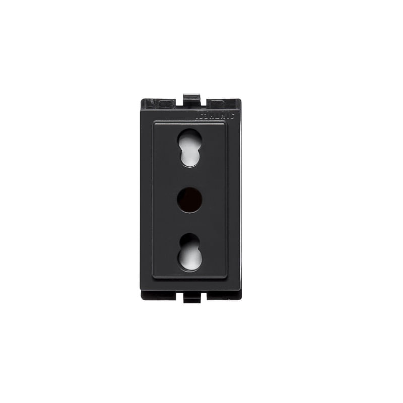 Fabricado en policarbonato resistente y equipado con bornes tipo prensa cable, este tomacorriente cuida el conductor eléctrico y ofrece una larga vida útil. Su estética moderna en color noir se integra perfectamente con las placas de la línea S17, combinando seguridad, funcionalidad y un diseño contemporáneo.