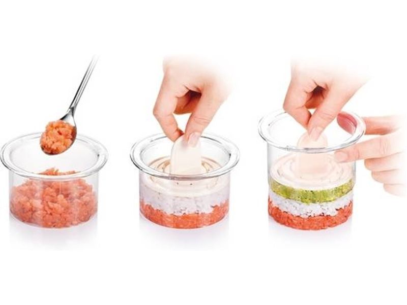 El molde para emplatar redondo Presto de 3 unidades permite lograr presentaciones profesionales en pocos pasos, facilitando la creación de entradas, segundos platos y postres con capas uniformes y bien definidas. Gracias a su prensador y escala integrada, es posible dosificar y compactar los alimentos de forma precisa, mejorando el acabado visual de cada preparación.