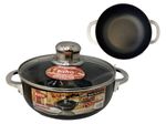 Cuenta con tapa de vidrio templado que permite visualizar la cocción sin necesidad de destapar. Su estructura combina aluminio, acero y vidrio para mayor durabilidad. El color negro aporta un diseño sobrio y moderno. Es un utensilio práctico para múltiples preparaciones.