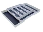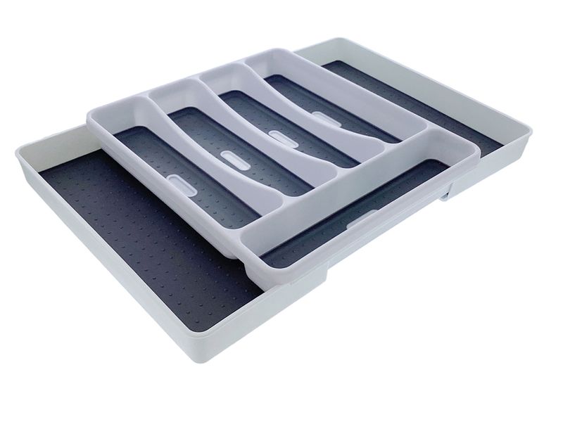 Su superficie lisa permite una limpieza rápida con solo un paño húmedo. El material de goma ayuda a evitar deslizamientos dentro del cajón. Su color gris combina fácilmente con distintos estilos de cocina. Una solución simple y eficiente para el orden diario.