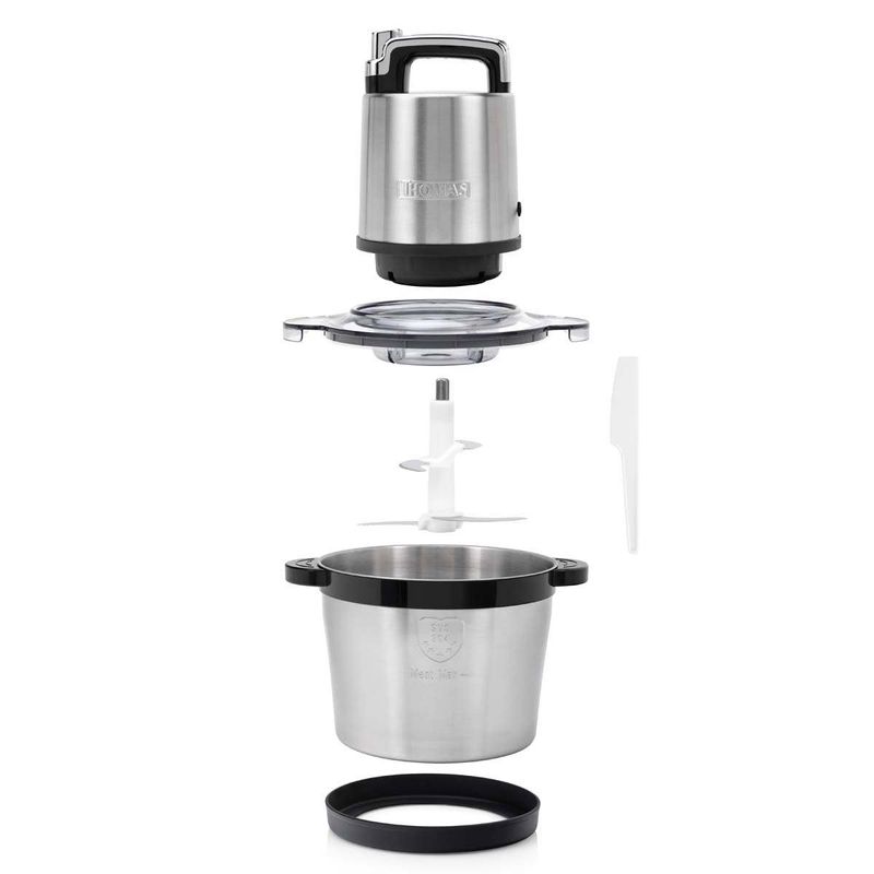 La picadora Thomas TH-9050I Stahl Pro XL está diseñada para quienes buscan potencia, capacidad y resultados precisos en la cocina. Sus 1200 watts de potencia y sus 4 cuchillas de acero inoxidable permiten procesar alimentos de forma rápida y homogénea.