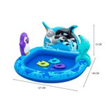 La piscina inflable Ballena es un centro de entretención ideal para niños mayores de 2 años, combinando chapoteo y juegos interactivos en un solo espacio. Su diseño colorido con animales del ártico invita a la imaginación y al juego prolongado.