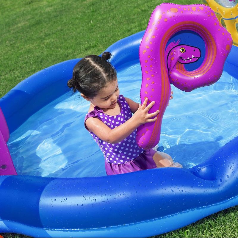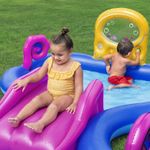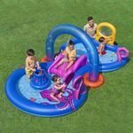 Fabricada en PVC resistente y con múltiples accesorios integrados, estimula la imaginación de los niños y brinda una experiencia de juego activa y refrescante, ideal para disfrutar en familia durante los días de calor.