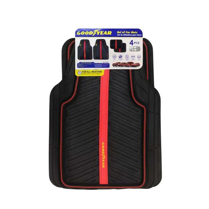 Piso De Goma Para Auto 4 Pieza Negro Rojo Goodyear