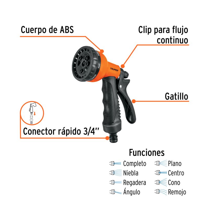 Pistola Riego 9 Funciones Plastica Pr-409 Truper