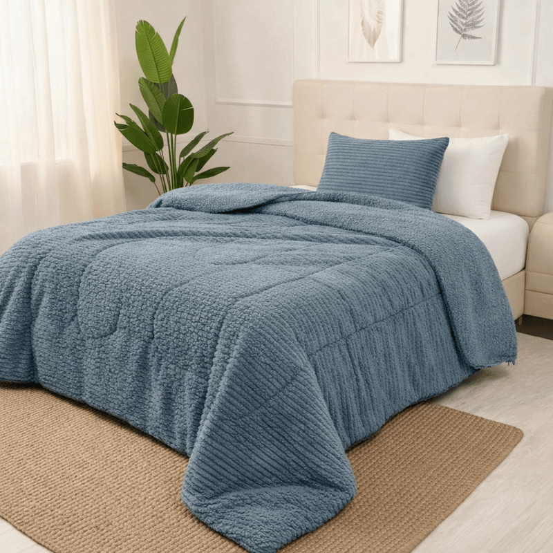 El plumón Mashini Corduroy Coral Sherpa 1,5 plaza está diseñado para ofrecer un alto nivel de abrigo gracias a su formato ultra térmico y extra relleno, ideal para climas fríos y temporadas de invierno. Su combinación de flannel jacquard en el frente y reverso sherpa entrega una sensación envolvente, suave y muy agradable al tacto, favoreciendo un descanso cómodo y reparador.
