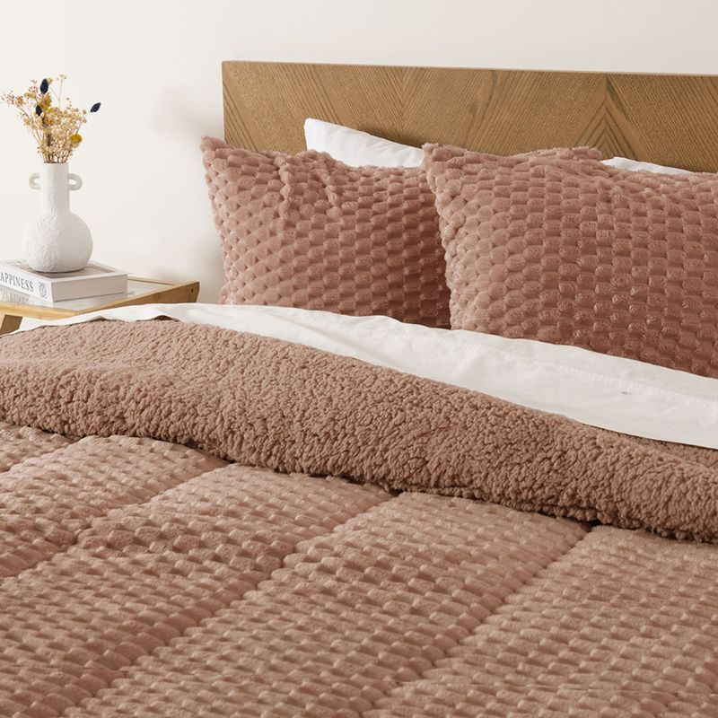 El plumón Mashini tamaño king combina flannel jacquard y reverso sherpa para entregar una experiencia de descanso cálida y envolvente.