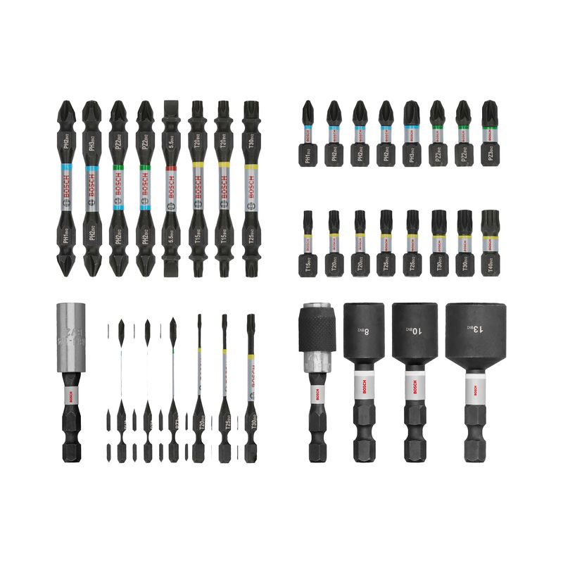 El set Bosch de 36 puntas de impacto está diseñado para trabajos intensivos que requieren alta durabilidad. Cada punta está fabricada en acero tratado térmicamente, ofreciendo resistencia superior frente a pares elevados. Su zona de torsión extendida absorbe la presión en cada uso, evitando fracturas prematuras.