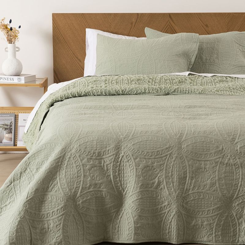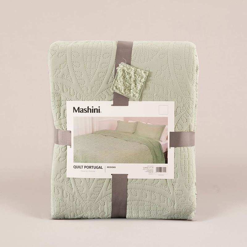 El quilt Mashini tamaño king combina microfibra cepillada y reverso sherpa para entregar una sensación cálida y acogedora en cada descanso.