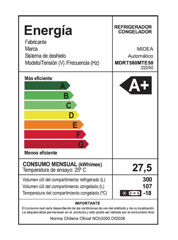 - Capacidad Refrigerador: 300 litros.