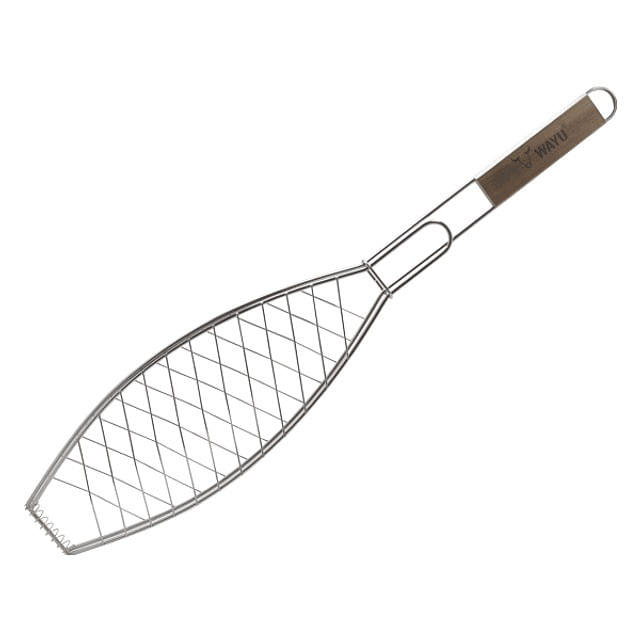 La Rejilla para Pescado Wayu es el accesorio perfecto para lograr una cocción ideal de tus pescados a la parrilla. Su elegante mango de madera de acacia ofrece un manejo cómodo, mientras que la rejilla de acero inoxidable permite una circulación uniforme del calor. Con unas dimensiones generosas de 58.5 x 10.5 cm, puedes cocinar piezas grandes de pescado sin problemas.