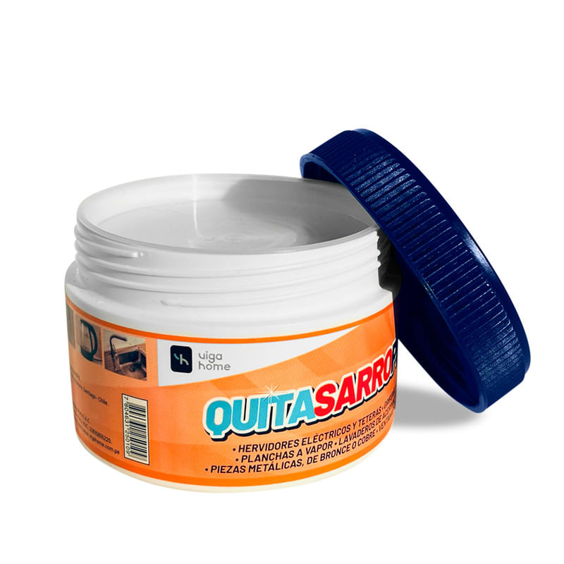 El Removedor de Sarro Plus Vigahome permite eliminar incrustaciones de sarro de manera simple y eficiente, ayudando a prolongar la vida útil de hervidores, griferías, planchas y utensilios metálicos.