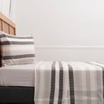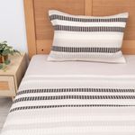 Gracias a su elástico 360°, se ajusta perfectamente al colchón de 150 x 200 cm, evitando desplazamientos. Incluye funda de 50 x 70 cm y un diseño estampado moderno que aporta estilo al dormitorio, combinando resistencia, abrigo y funcionalidad.