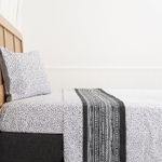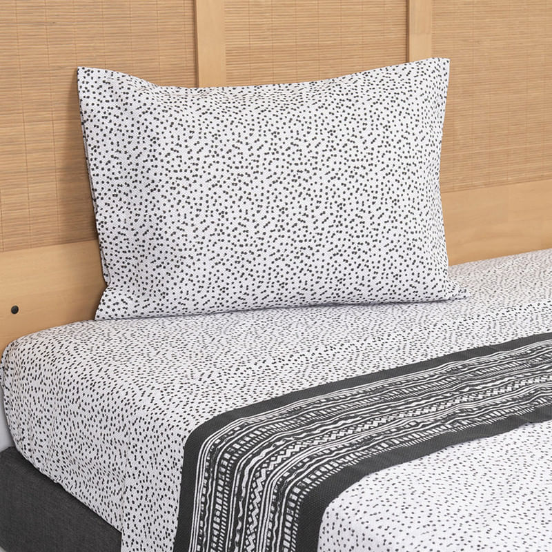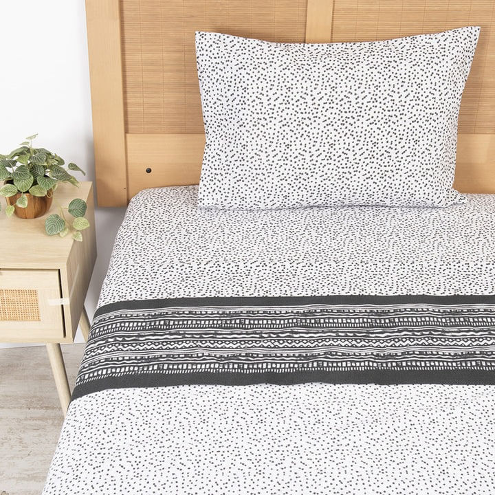 Este juego de sábanas Mashini de 144 hilos ofrece una mezcla equilibrada de algodón y poliéster que aporta suavidad, frescura y resistencia al uso diario. Su diseño geométrico moderno brinda un toque decorativo ideal para renovar cualquier dormitorio.