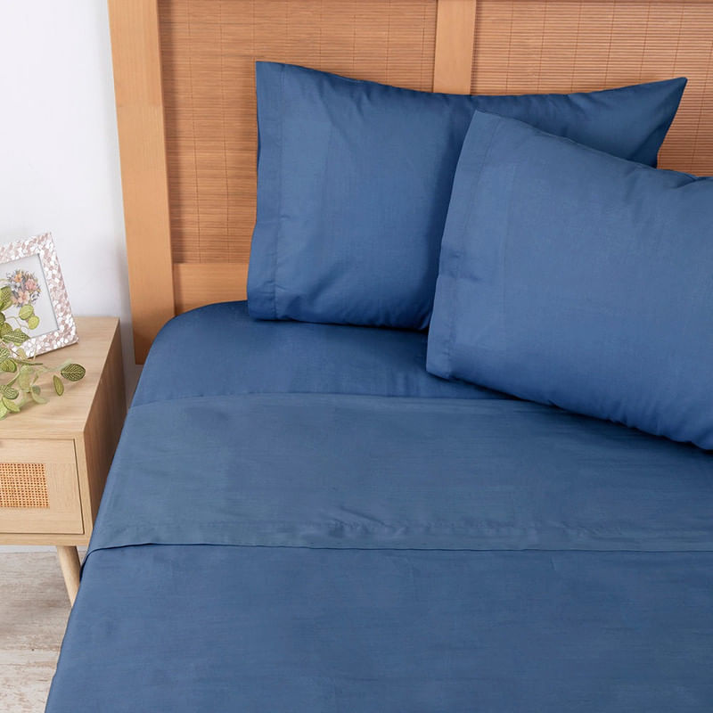 El set de sábanas Mashini 2 plazas de 144 hilos en colores lisos está diseñado para ofrecer un descanso cómodo y agradable durante todo el año. Su mezcla de algodón y poliéster combina la frescura natural del algodón con la suavidad, resistencia y fácil mantención del poliéster, ideal para el uso diario.