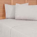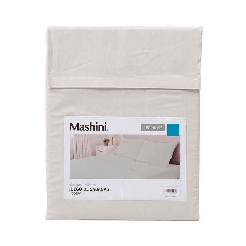 La sábana Mashini de 2 plazas y 180 hilos está confeccionada con una mezcla de poliéster y algodón que ofrece una textura suave y agradable para el descanso diario. Su diseño liso en color gris aporta un estilo moderno que combina fácilmente con distintos ambientes.
