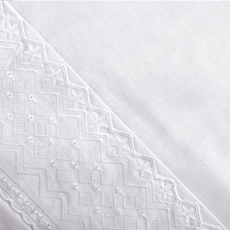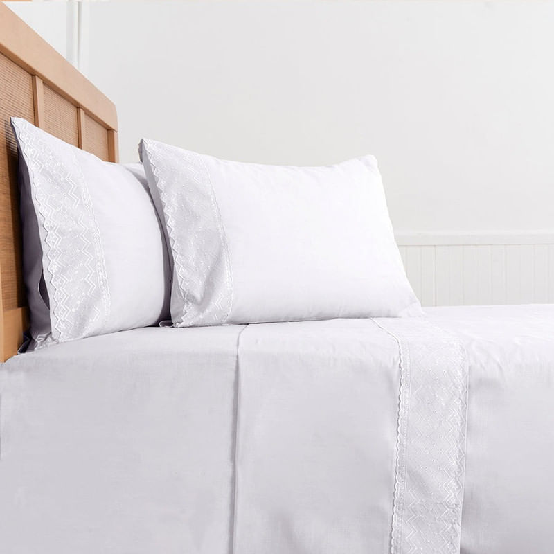 Sabana King 144 Hilos Broderie Geo Blanco Mashini