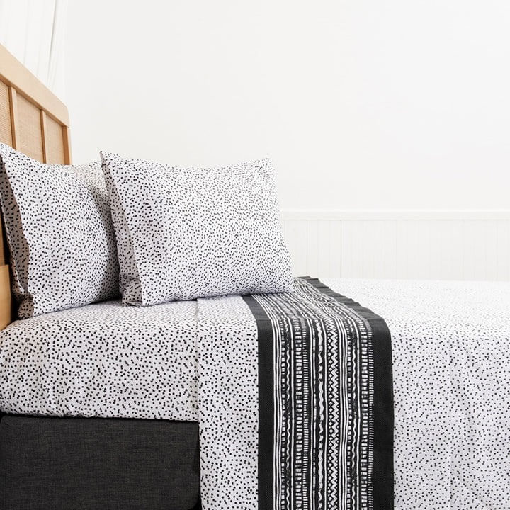 Este juego de sábanas Mashini de 144 hilos ofrece una mezcla equilibrada de algodón y poliéster que aporta suavidad, frescura y resistencia al uso diario. Su diseño geométrico moderno brinda un toque decorativo ideal para renovar cualquier dormitorio.