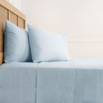 El set de sábanas Mashini King de 200 hilos en color celeste está diseñado para quienes buscan una experiencia de descanso premium, combinando suavidad, frescura y durabilidad. Su mezcla equilibrada de algodón y poliéster entrega una sensación agradable al tacto, ideal para un uso cómodo y continuo durante todo el año.