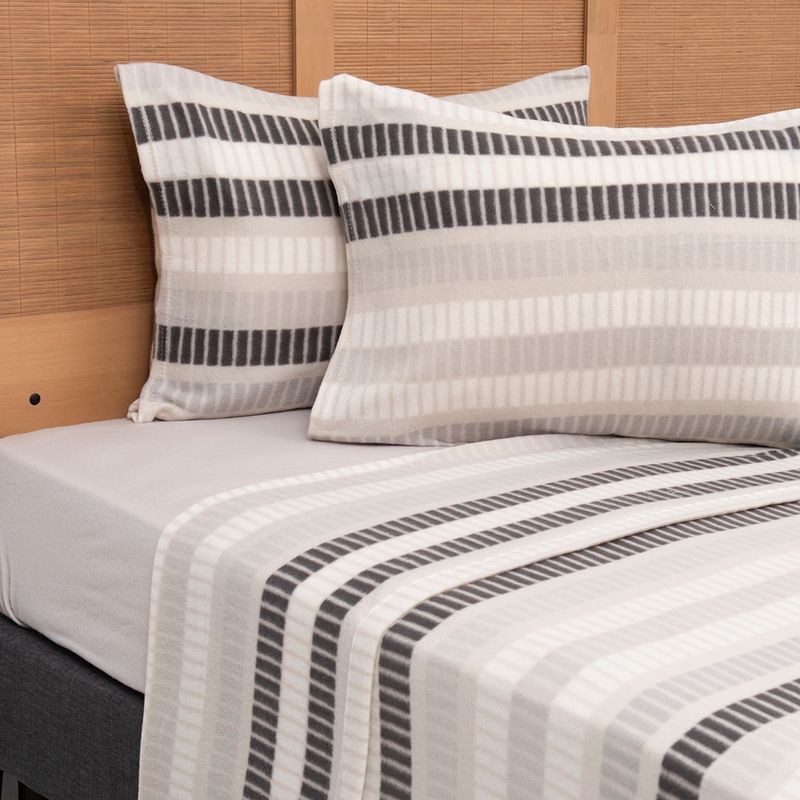 Con medidas de 240 x 200 cm y elástico 360°, se adapta perfectamente al colchón King, evitando desplazamientos. Incluye 2 fundas de 50 x 90 cm y un diseño moderno que aporta estilo, resistencia y máxima calidez a tu dormitorio.