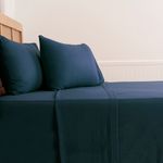 Con medidas de 240 x 200 cm y elástico 360°, se ajusta perfectamente al colchón King, evitando movimientos. Incluye 2 fundas de 50 x 90 cm y un elegante color azul que aporta estilo y armonía a tu dormitorio.
