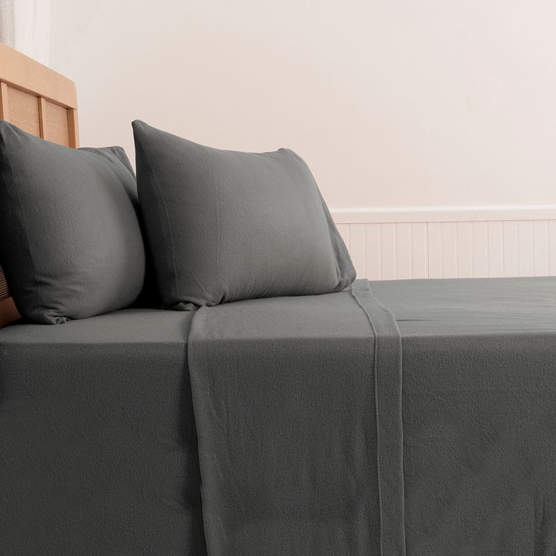 Con medidas de 240 x 200 cm y elástico 360°, se adapta perfectamente al colchón King, evitando desplazamientos. Incluye 2 fundas de 50 x 90 cm y un elegante tono gris que aporta estilo, sobriedad y armonía a tu dormitorio.