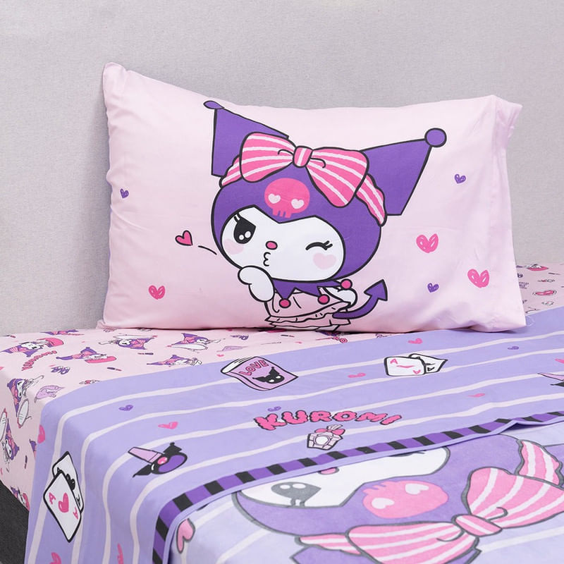 El juego de sábanas Mashini Kuromi Coqueta 1.5 plazas ofrece suavidad, estilo y comodidad en cada noche. Su tela de microfibra asegura una sensación acogedora y durabilidad prolongada.