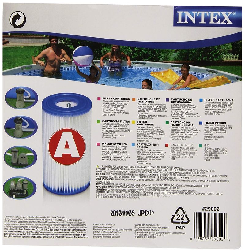 Aire Libre y MascotasPiscina y PlayaMantención de PiscinasCartucho De Filtro A Para Piscina Pack 2 Unidades Intex