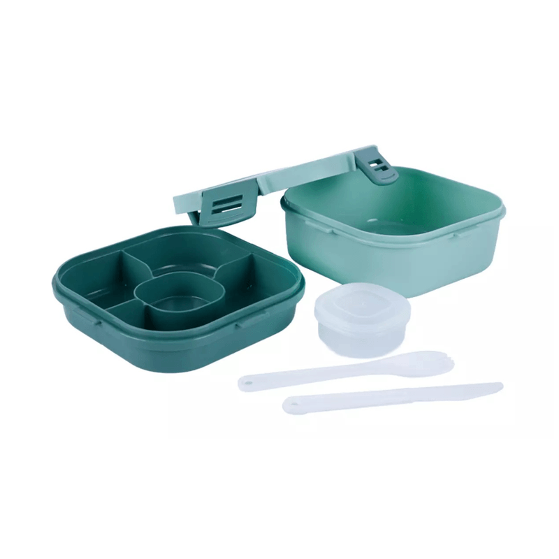 Fabricado en plástico resistente y libre de BPA, combina durabilidad y ligereza para un uso cotidiano. Su base verde aporta un estilo moderno, mientras la tapa blanca facilita su identificación en estanterías o loncheras. Perfecto para uso doméstico, transporte de comidas o almacenamiento de ingredientes secos.