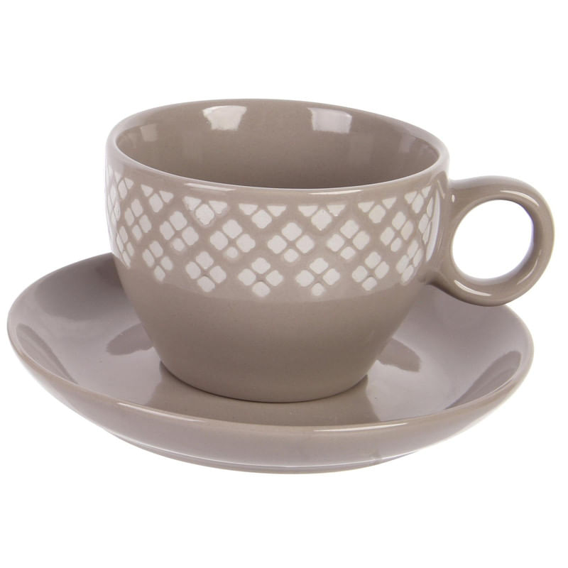 Set de Tazas y Platos de Cerámica Beige Oscuro