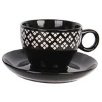Este sofisticado set de tazas y platos de 8 piezas, en un atemporal color negro, es la elección ideal para añadir un toque de elegancia moderna a tu mesa. Fabricado con 100% cerámica de alta calidad, cada pieza combina durabilidad con un sutil diseño de hojas que realza su encanto.