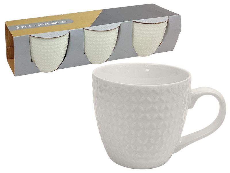 El set de tazas de café de 230 ml combina un diseño texturizado con un uso práctico para el día a día. Su patrón geométrico aporta un detalle decorativo que realza la presentación de las bebidas. Fabricadas en cerámica blanca, son ideales para bebidas calientes o frías. Perfectas para consumo individual.