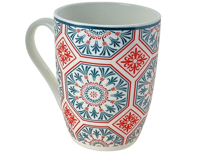 El tazón de 354 ml con diseño de azulejos combina funcionalidad y un atractivo estilo decorativo. Su patrón geométrico en tonos rojo y azul verdoso aporta un toque distintivo a la mesa. Fabricado en cerámica, es ideal para el uso diario en el hogar. Perfecto para servir cereales, sopas o postres.