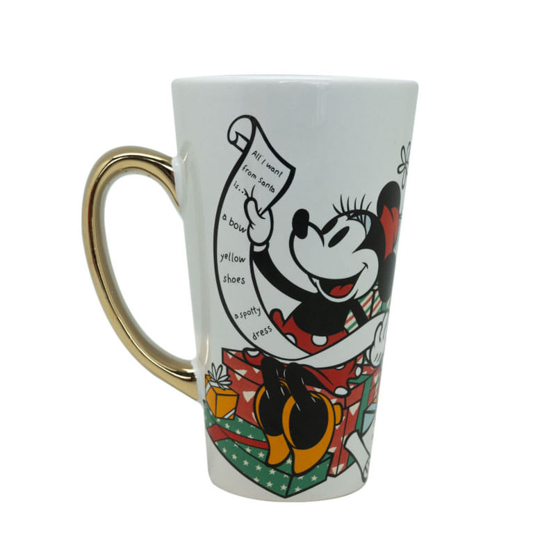 El tazón latte Disney Navidad Minnie de 450 mL aporta alegría y dulzura a cada desayuno. Su diseño navideño con colores cálidos y detalles encantadores lo convierte en una pieza especial.