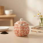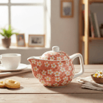 La tetera loza margarita coral Homewell de 375 ml es perfecta para preparar té en hojas e infusiones naturales con un toque floral y decorativo. Su diseño en tonos coral con detalles de margaritas aporta calidez y elegancia a la mesa, ideal para el desayuno, la hora del té o reuniones especiales en el hogar.