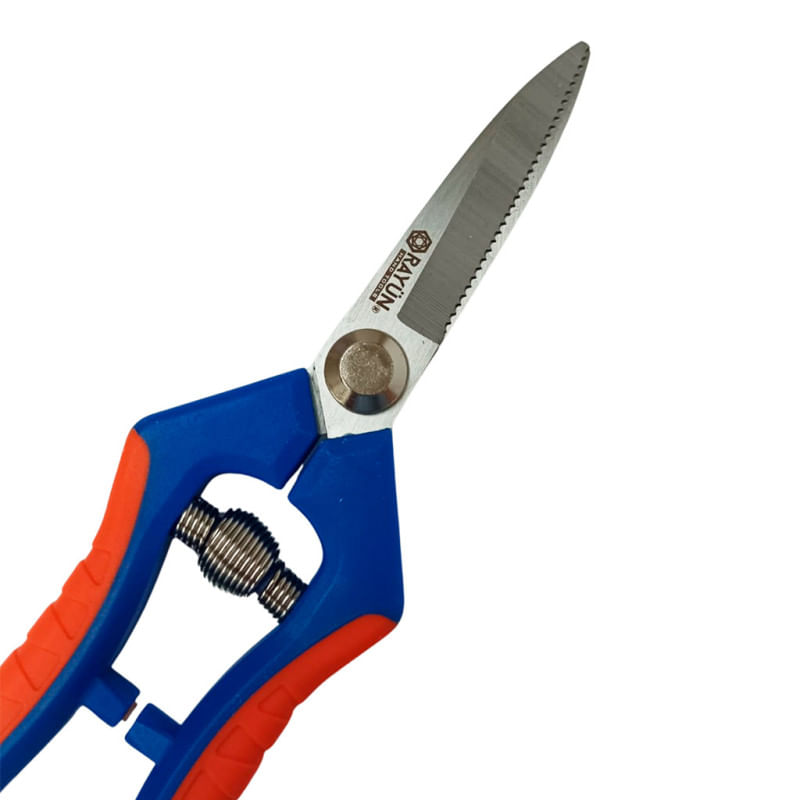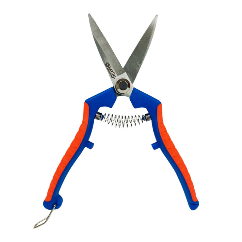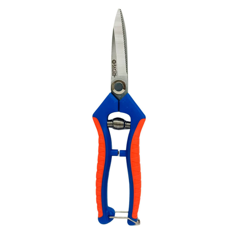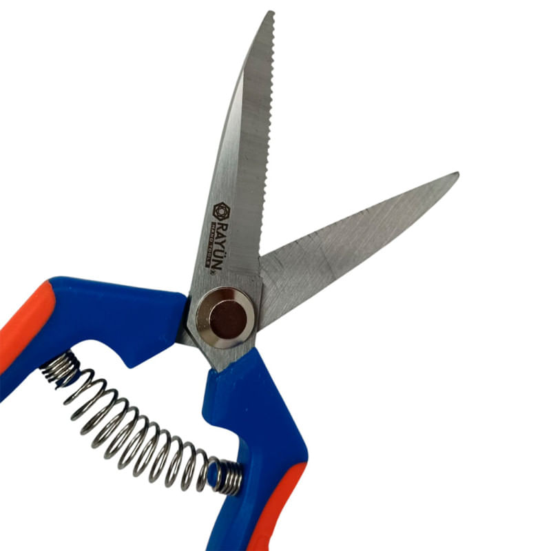 La tijera de cosecha recta microdentada Rayun está diseñada para ofrecer un corte limpio y seguro en trabajos agrícolas exigentes. Su hoja de acero al carbono cromado de 4 mm y su filo dentado permiten vendimiar y cosechar cebollas y ajos de forma rápida y controlada.