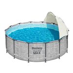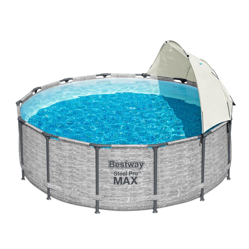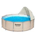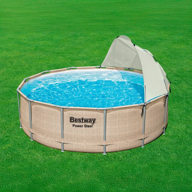 El toldo tipo canopy de Bestway® ha sido desarrollado como un accesorio inteligente para maximizar tu experiencia de natación, ofreciéndote una protección solar perfecta. Diseñado específicamente para piscinas redondas con estructura de acero de 305 a 549 cm de diámetro, este toldo crea un agradable oasis de sombra. Está fabricado con poliéster 190T con un revestimiento de PA y cuenta con postes de fibra de vidrio de 7,9 mm, garantizando estabilidad y durabilidad.