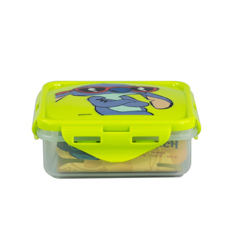 El tupper hermético Stitch Vibra Disney de 500 ml está diseñado para mantener los alimentos frescos y seguros, siendo ideal para snacks y colaciones de los más pequeños.