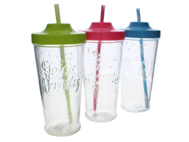 Cocina y MenajeMenaje ComedorVasos, Copas y JarrosVaso Con Bombilla Y Tapa 670Ml Rosado Renga