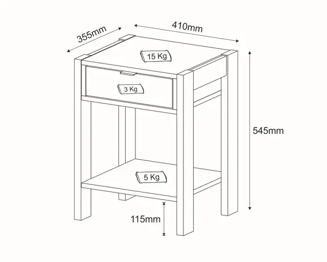 Cuenta con un cajón para almacenamiento, ideal para mantener tus artículos organizados y a mano, aportando un toque de orden y elegancia a tu dormitorio.
